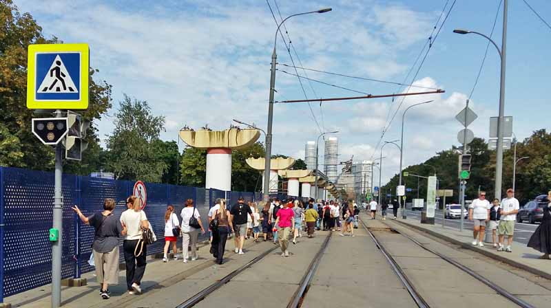 Для входа на выставку приходтся обходить площадку демонтажа практически по трамвайным рельсам.